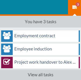 Automatic system tasks will be generated from time to time, which will relate to tasks that your organisation require you to complete. These could be to notify you to complete your performance review, to return your signed employee contract if you’re new starter or approving leave requests for team members, should you be a manager/team leader.