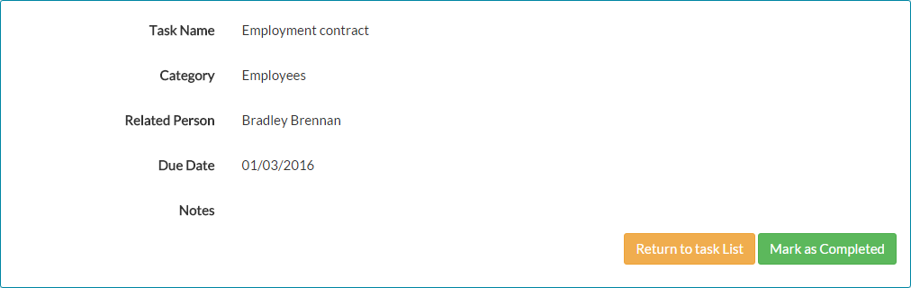- For example, the below task requires Bradley’s manager to complete Bradley’s review. The mark as completed button has been replaced by an action button, for Bradley’s manager to start the review process quickly and easily.
