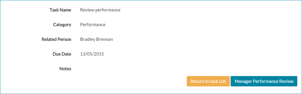 - Therefore, in the example above, when Bradley’s manager completes the manager performance review for Bradley, this task will be marked as complete.