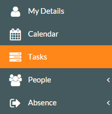 - You can view your outstanding list of tasks at any time, by clicking either Tasks on the side menu, or the Tasks Left dashboard panel.