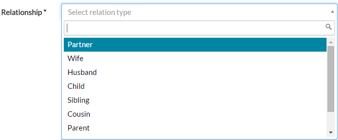- From the Relationship drop-down menu, select the relationship of the person giving birth.