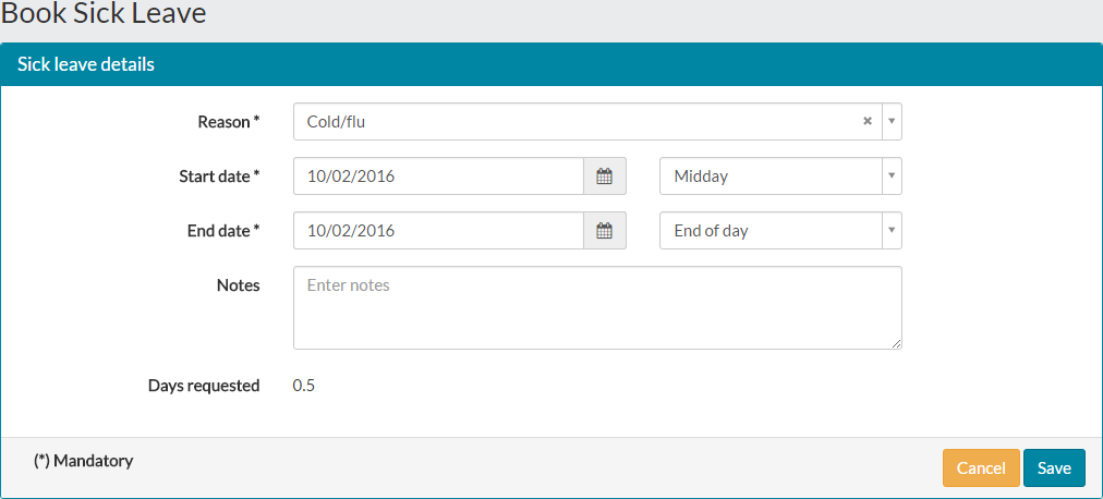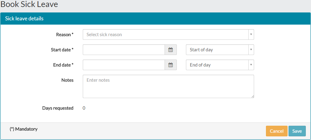 - The Book Sick Leave page will open, allowing you to record your sick leave details.