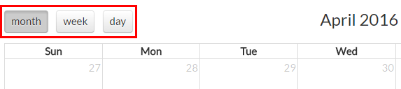 - You can display the calendar by month, week or day, by using the corresponding controls shown below.