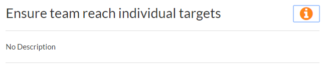 - By clicking the orange and white information icon to the right, you can expand the goal to see any related or corresponding information your manager may have added. It could also read ‘No Description’ if nothing has been added. This will look like the below example.