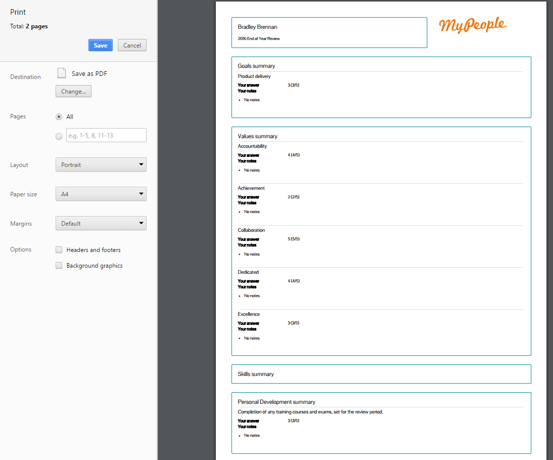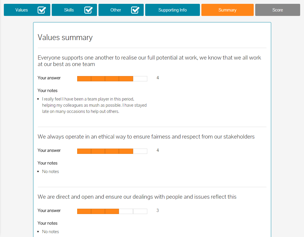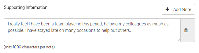 - You can also choose to add a note, to explain to your team leader/manager as to why you have measured your achievement of this question/goal the way you have. This is however, not required unless your manager has advised differently.