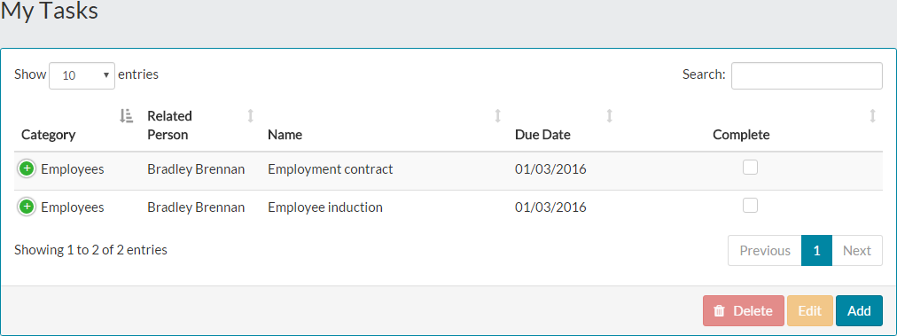 - When an automated task has been completed, either by completing the corresponding action within MyPeople and the task automatically being updated, or by marking an automatic task complete manually, like the examples above, the check-box status changes to slightly lighter version of a ticked box.