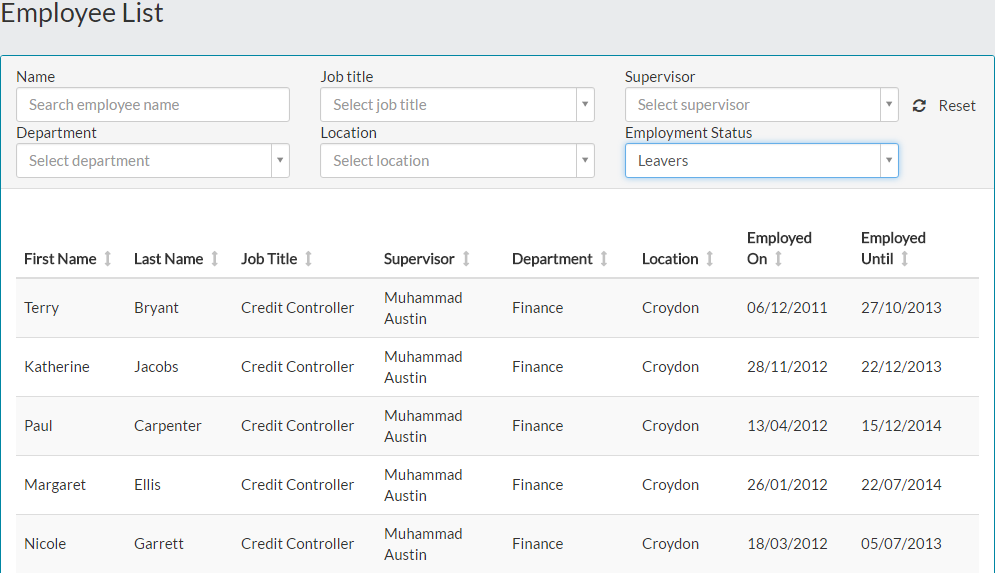 - Finally, if you’re an HR administrator, you may wish to see a list of past employees. Using the Employment Status drop-down menu filter, you can change this to Leavers and the table will be updated to show anyone who has previously been employed.