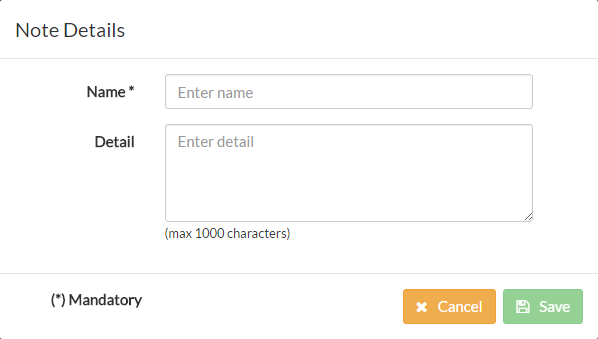 - Enter some additional information about the note using the Detail field, but this is not required. The Detail field also has a character limit of 1000 characters.
