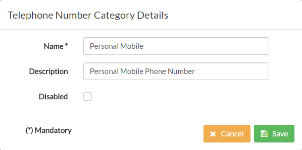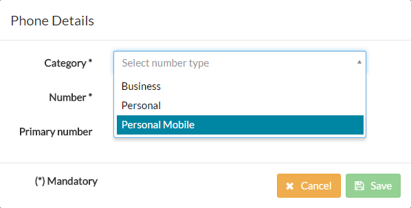 - In the example above, when editing an employee record and adding a new telephone number for them, we can now choose the new Personal Mobile value and add a corresponding number.
