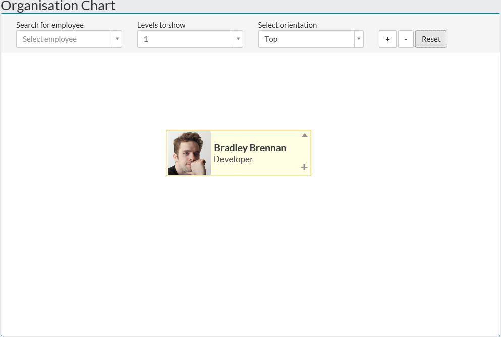 If your organisation is quite large, you can view the Org chart by employee, select how many levels of employees you wish to see and even change the orientation to see it from left to right or vice versa, rather than top-down.