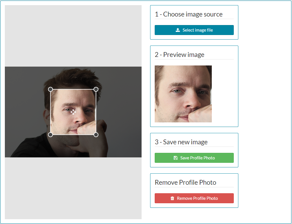 Preview after increased and re-positioned cropping square. This is how the photo will appear across the portal. - Once you have cropped your photo and the preview looks good, click Save Profile Photo. An on-screen notification will confirm your photo has been updated, before returning you to the dashboard.