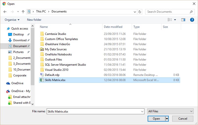 - Locate and select the file to be uploaded, before clicking open.