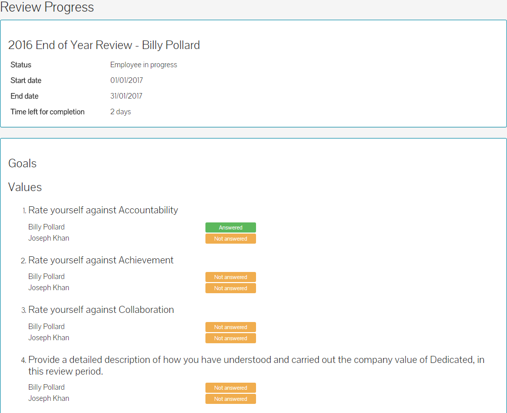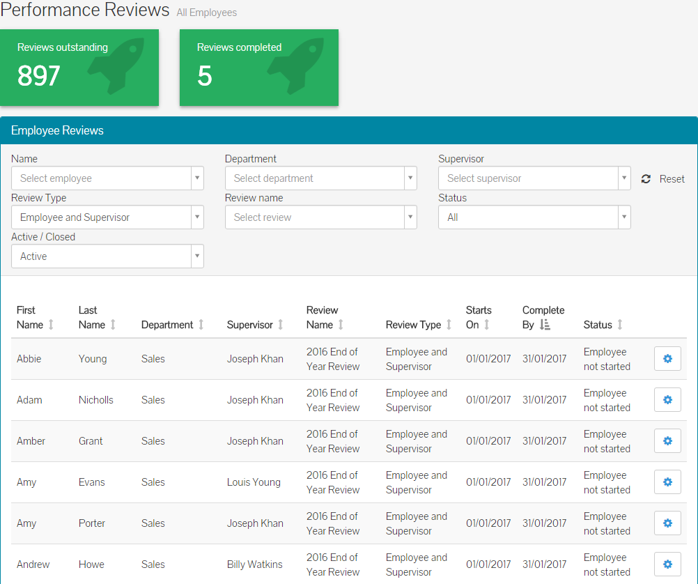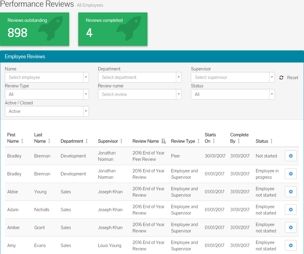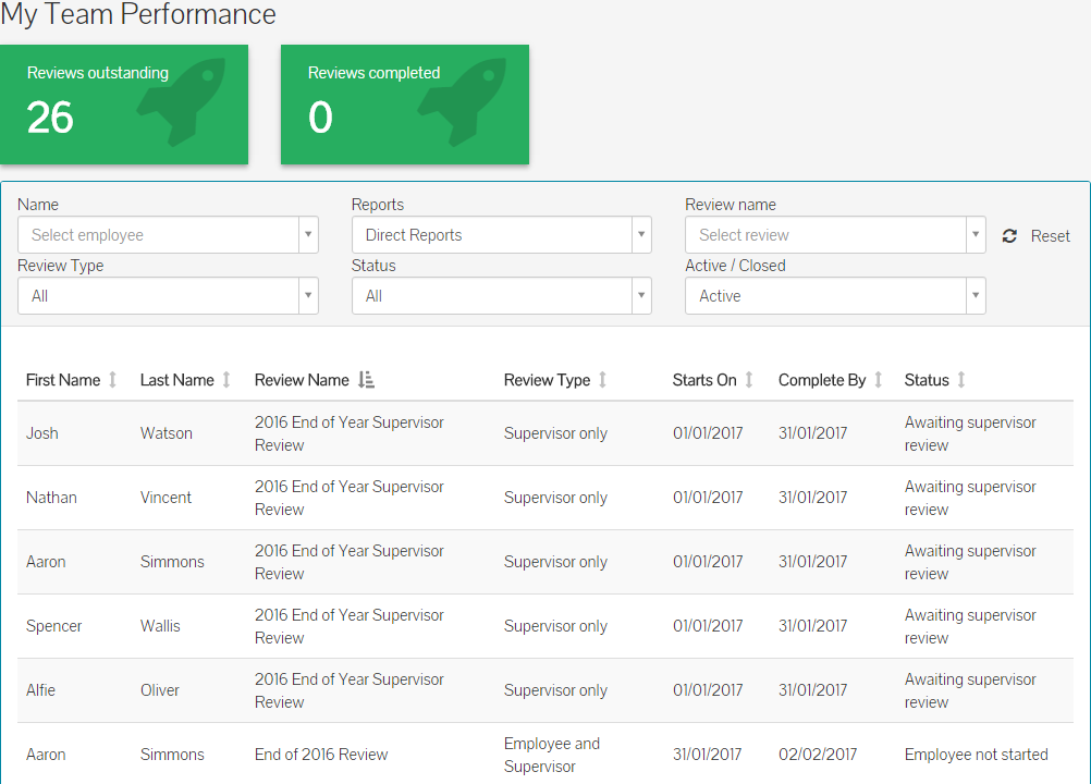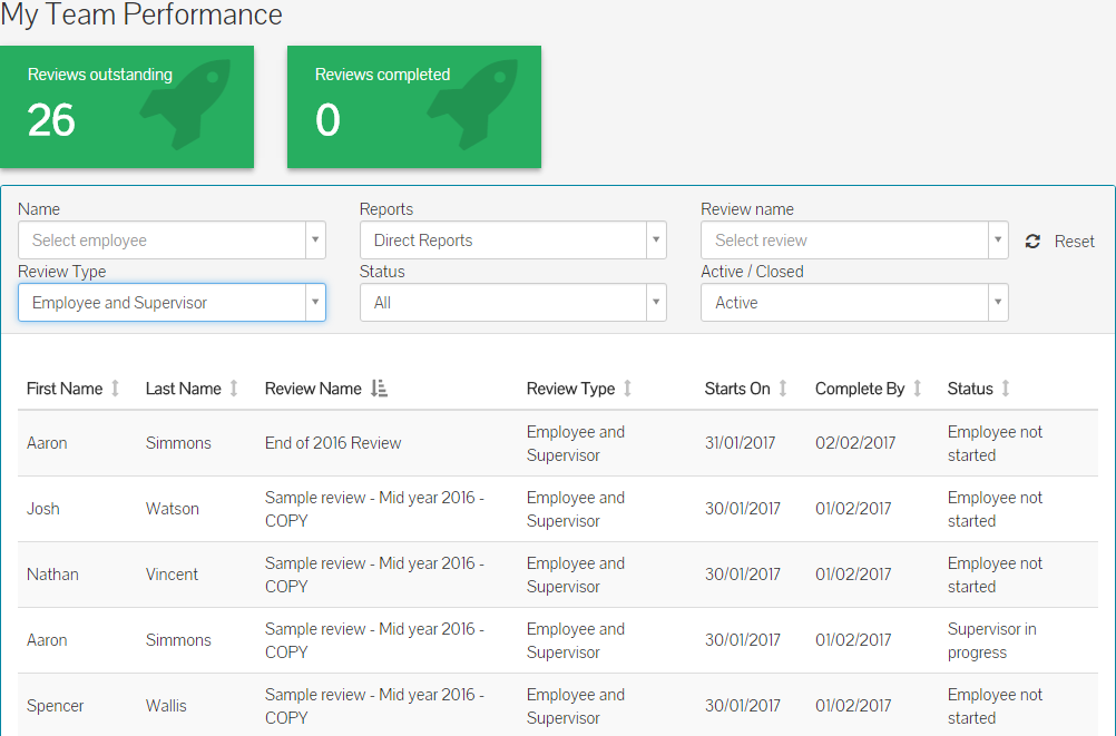 - From here, you could use the status of the review to chase an employee or supervisor, or confirm that the review is taking place as expected.