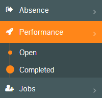 - For employees who were a peer reviewer, you can access completed peer reviews by using the Performance side menu, followed by the Completed sub-menu.