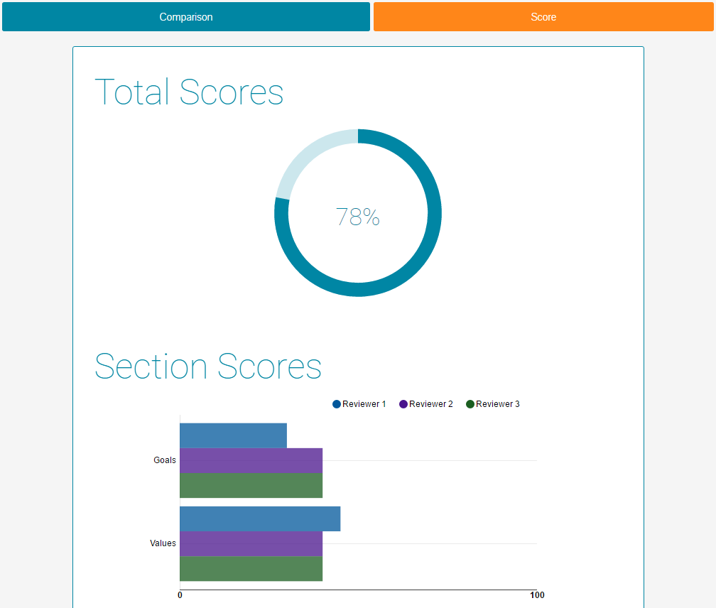 - After clicking the peer review you have found via one of the above methods, the review will be loaded on screen, showing the Comparison and Score pages.